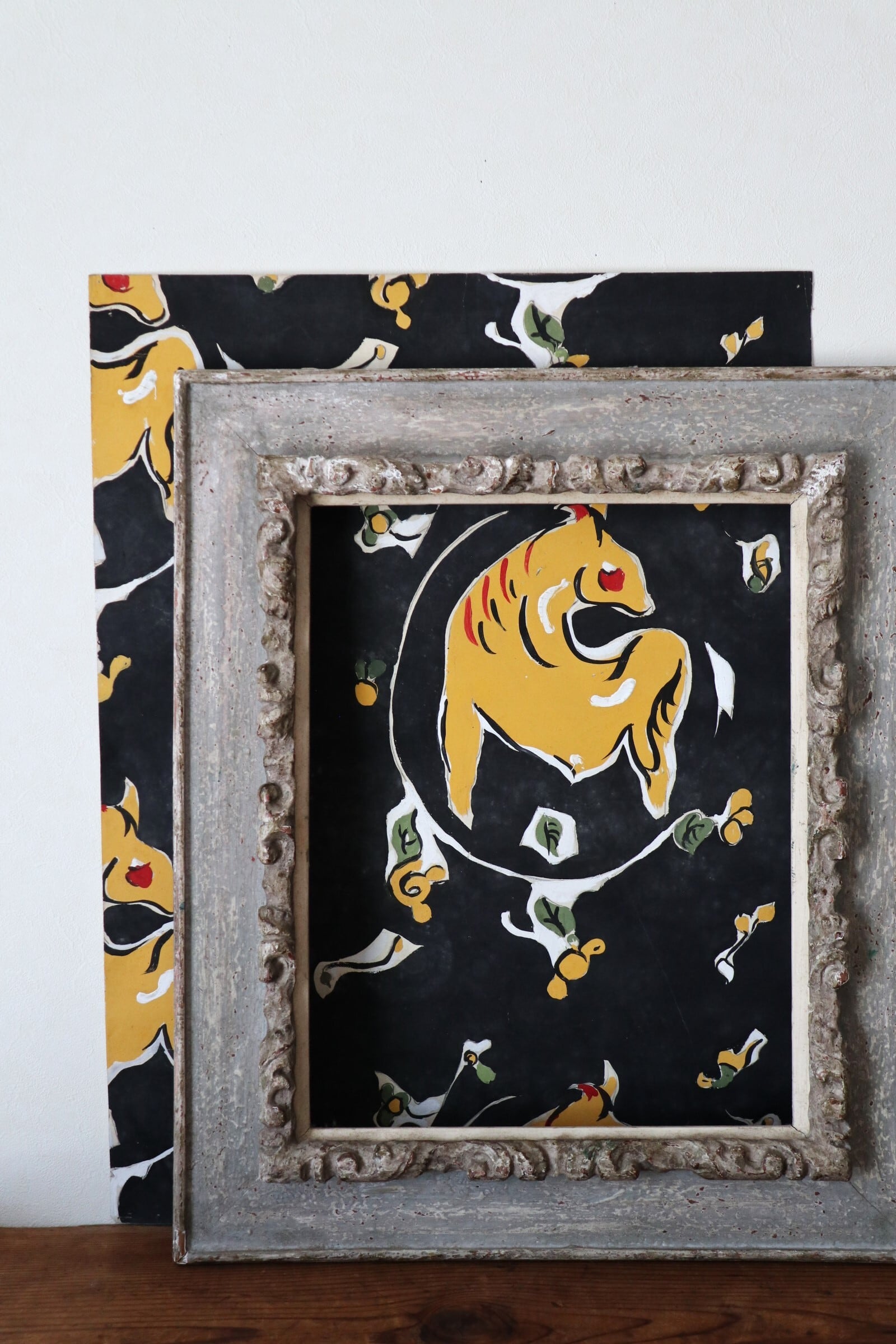 山吹色の動物が描かれた、色鮮やかな水彩画。