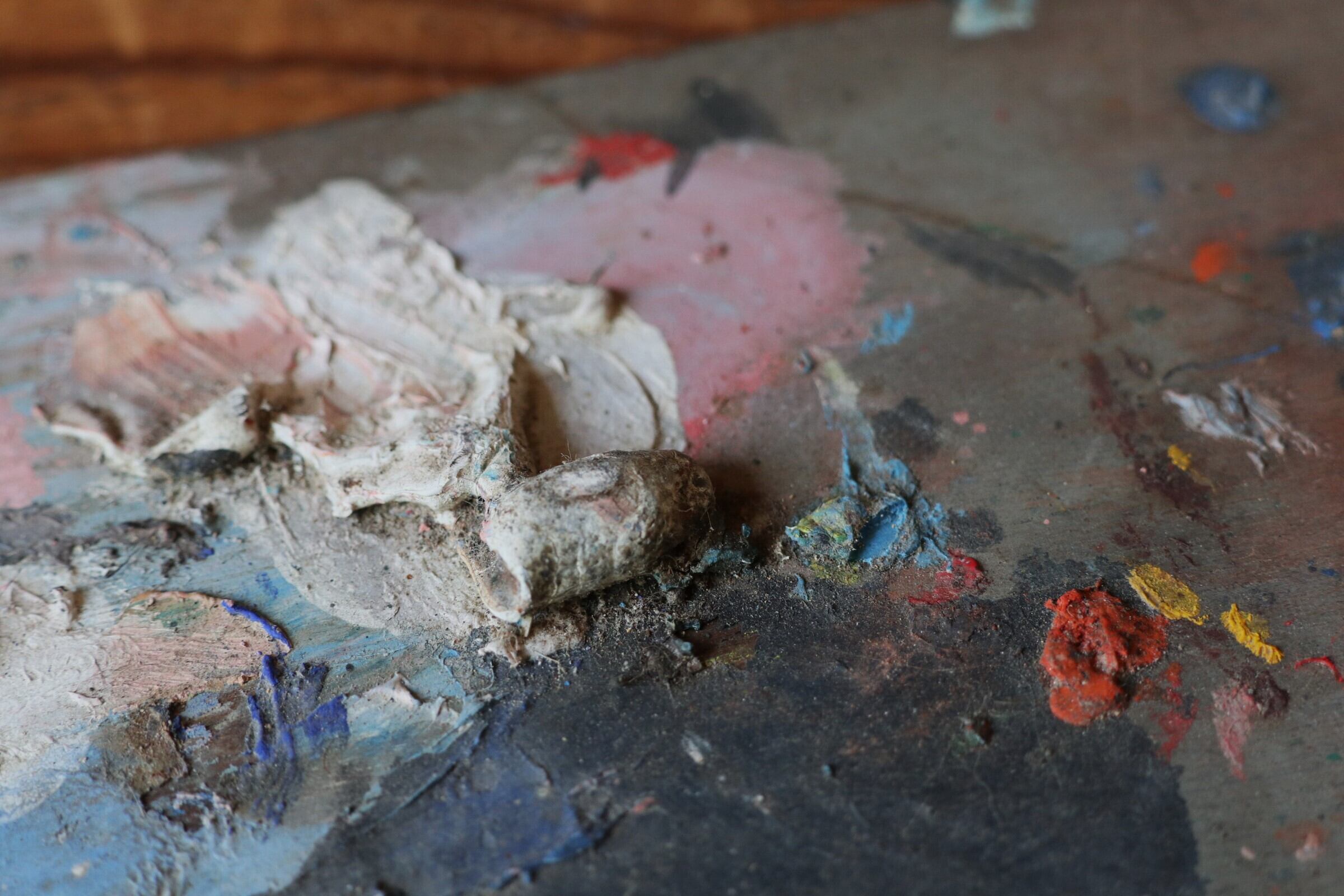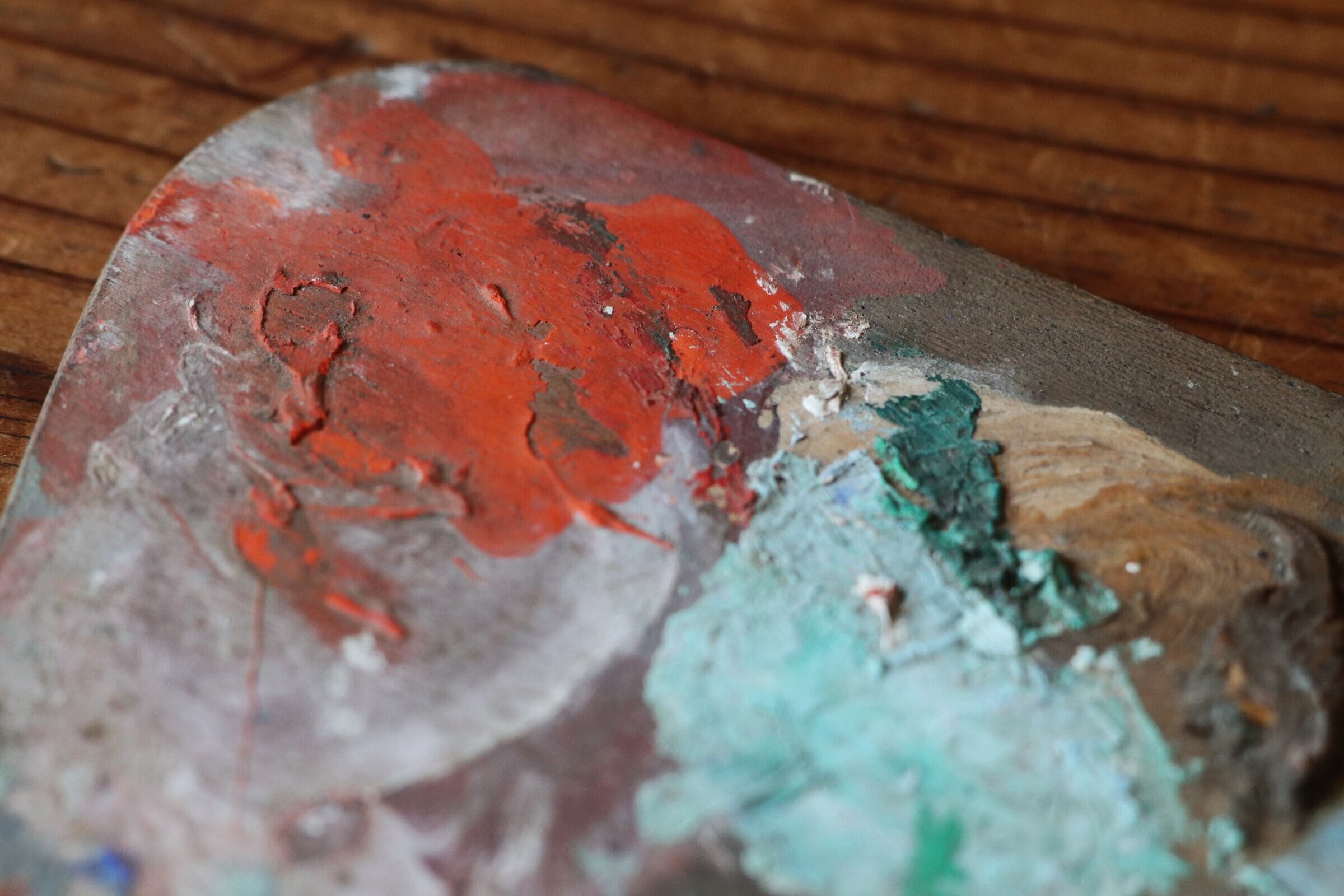 パレットの上で混ざり合う絵の具から、どんな風景や
