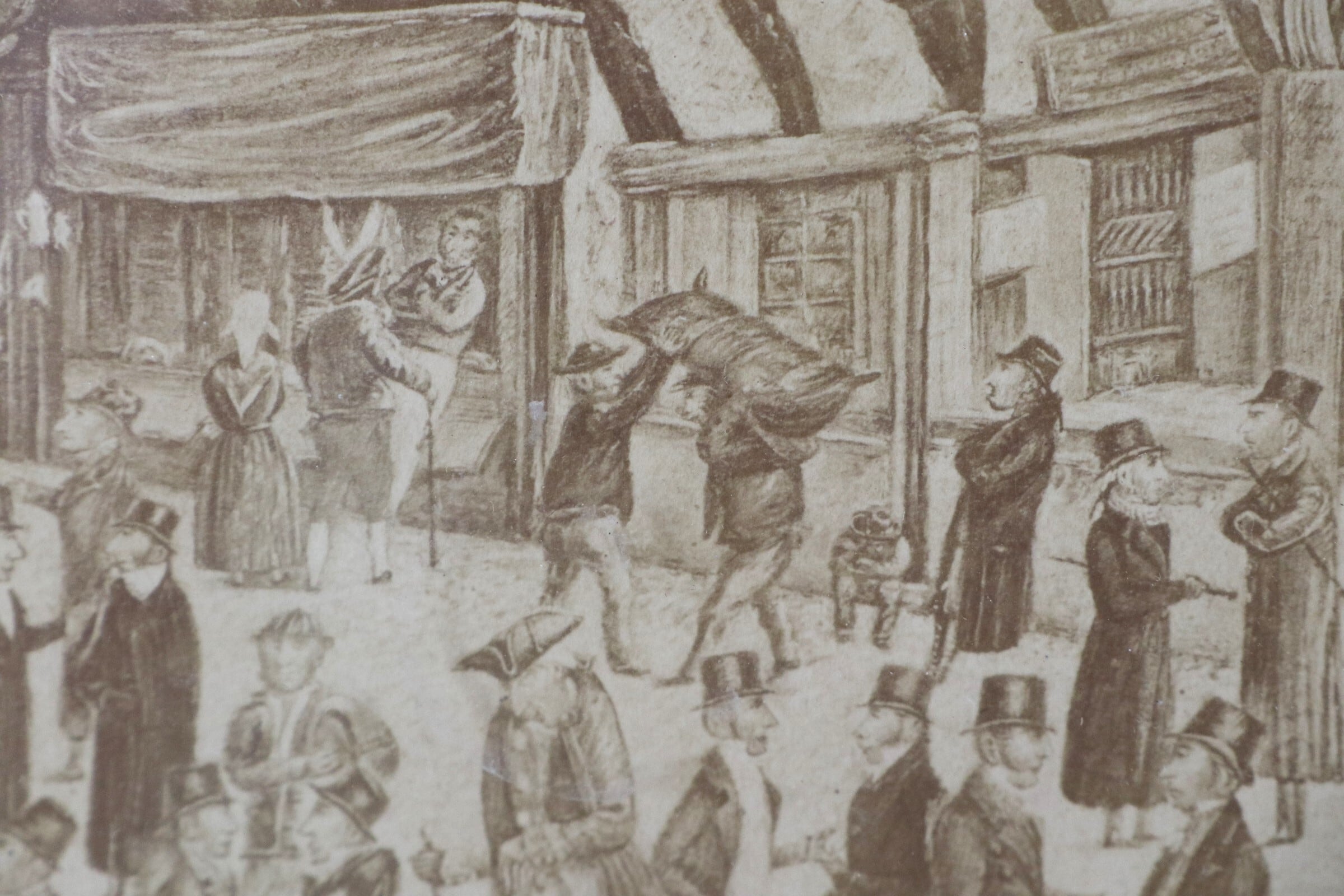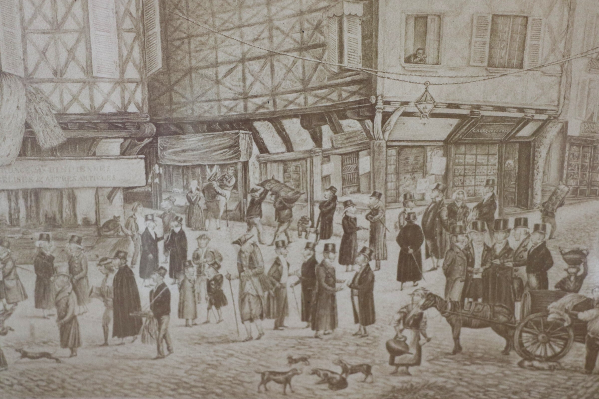 位置するPlace des Cinq-Cantonを描いたリトグラフ