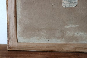 状態: 額 割れた箇所有 塗料の剥がれ 右上に1ヵ所シミ有 裏面 紙の劣化 色褪せ