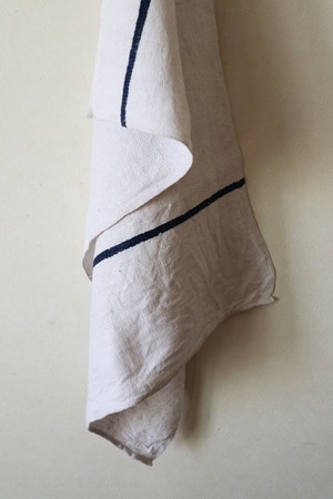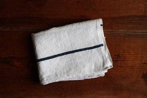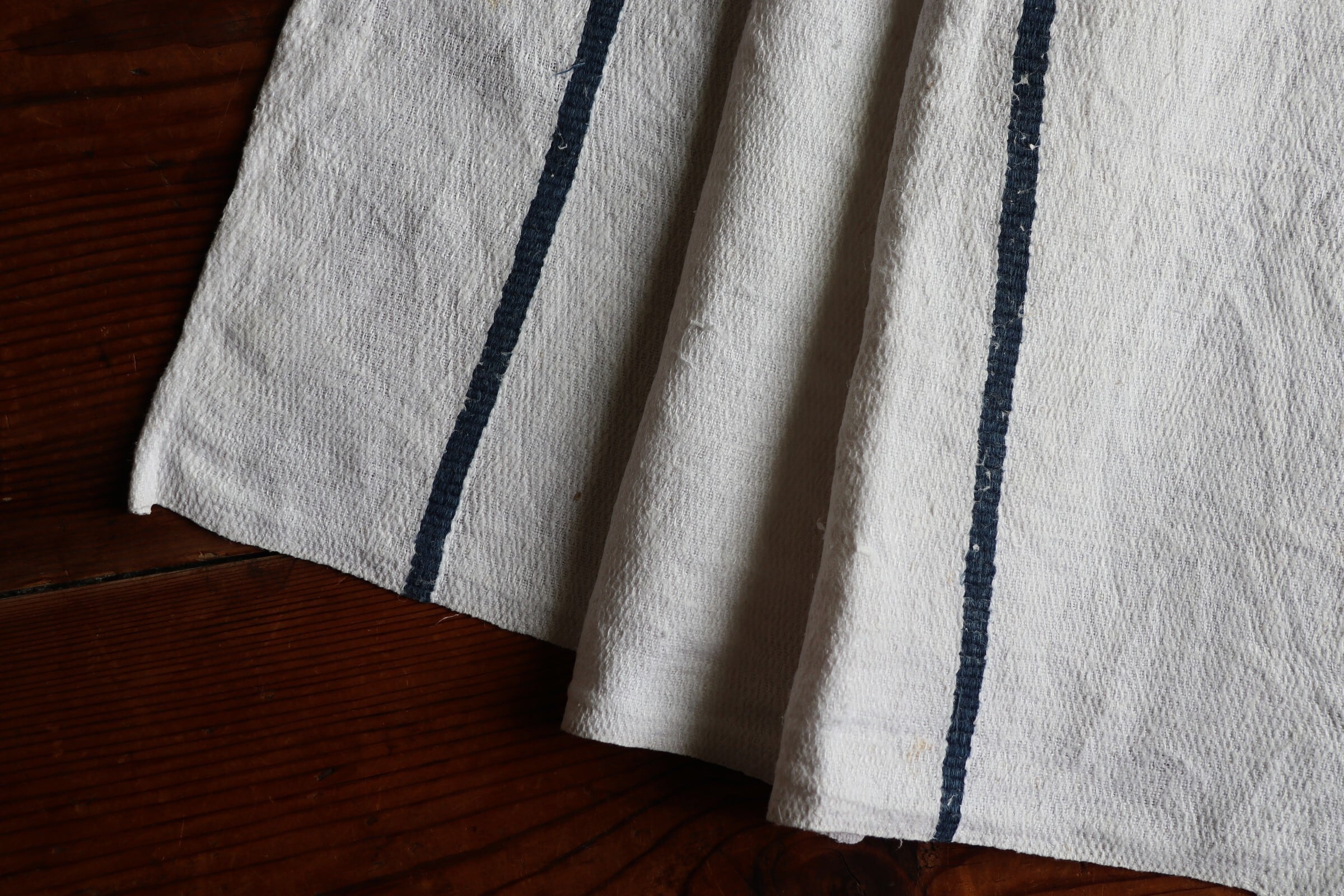 目の詰まったしっかりとした厚みの生地に、細やかなインディゴブルーのラインが