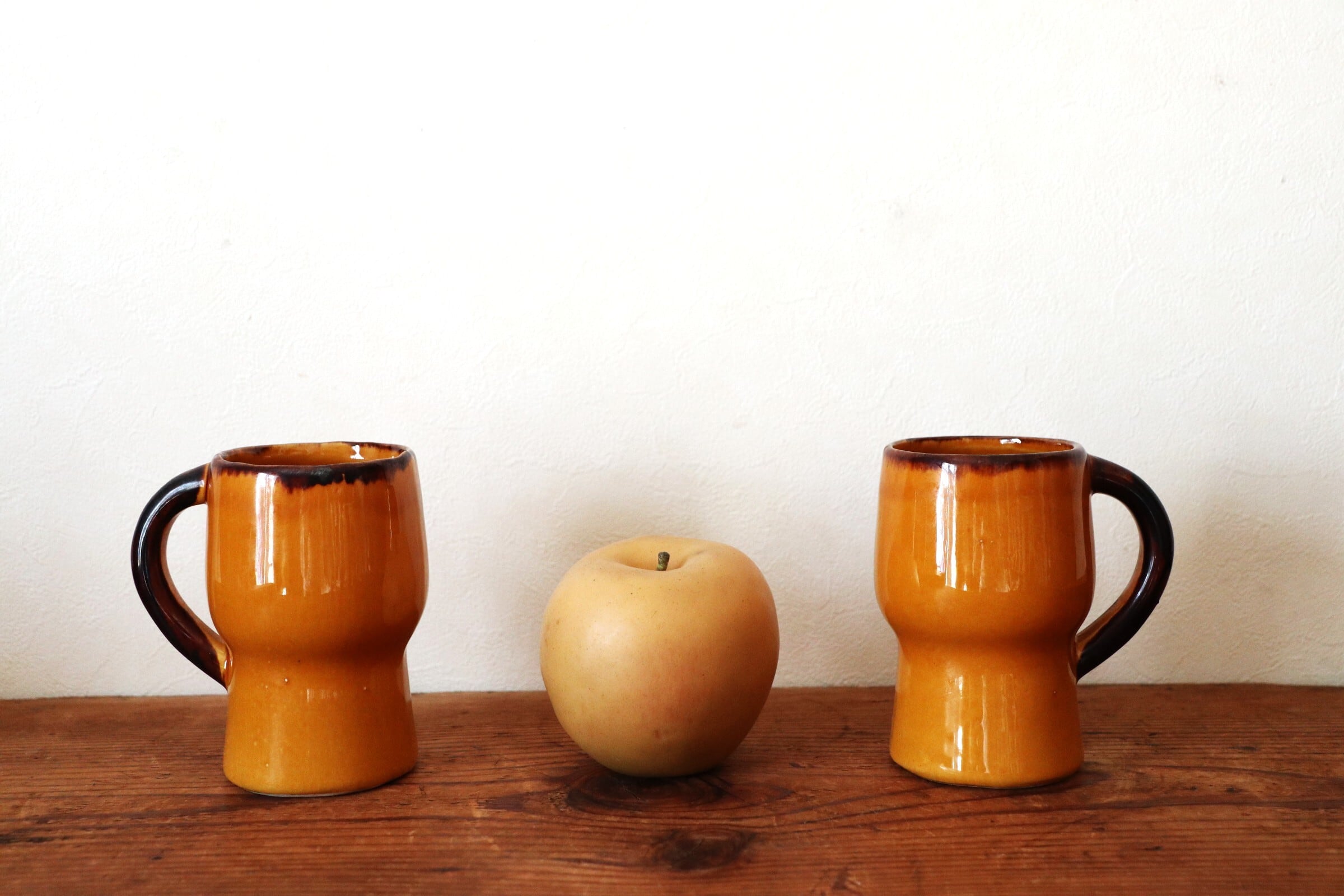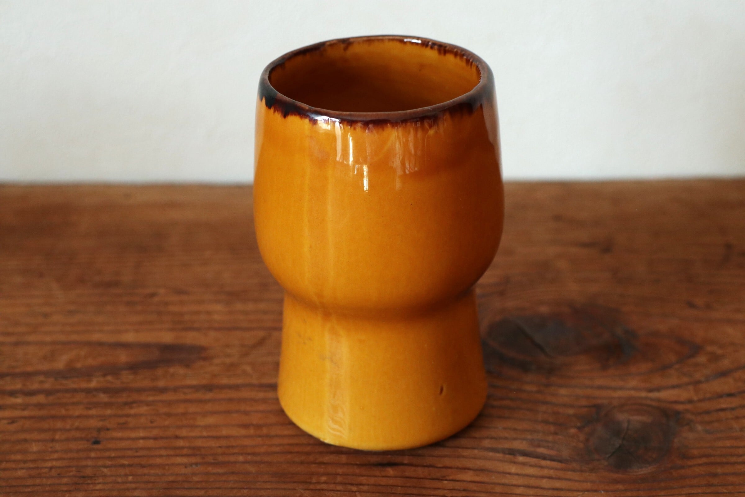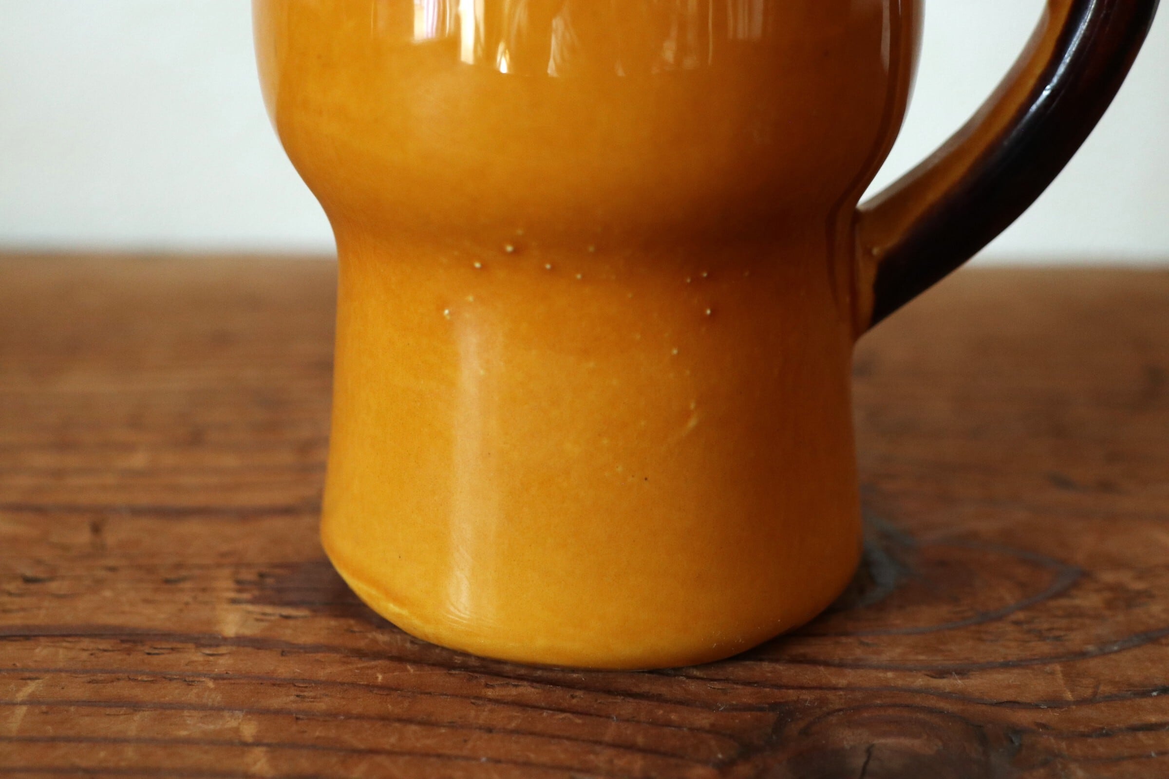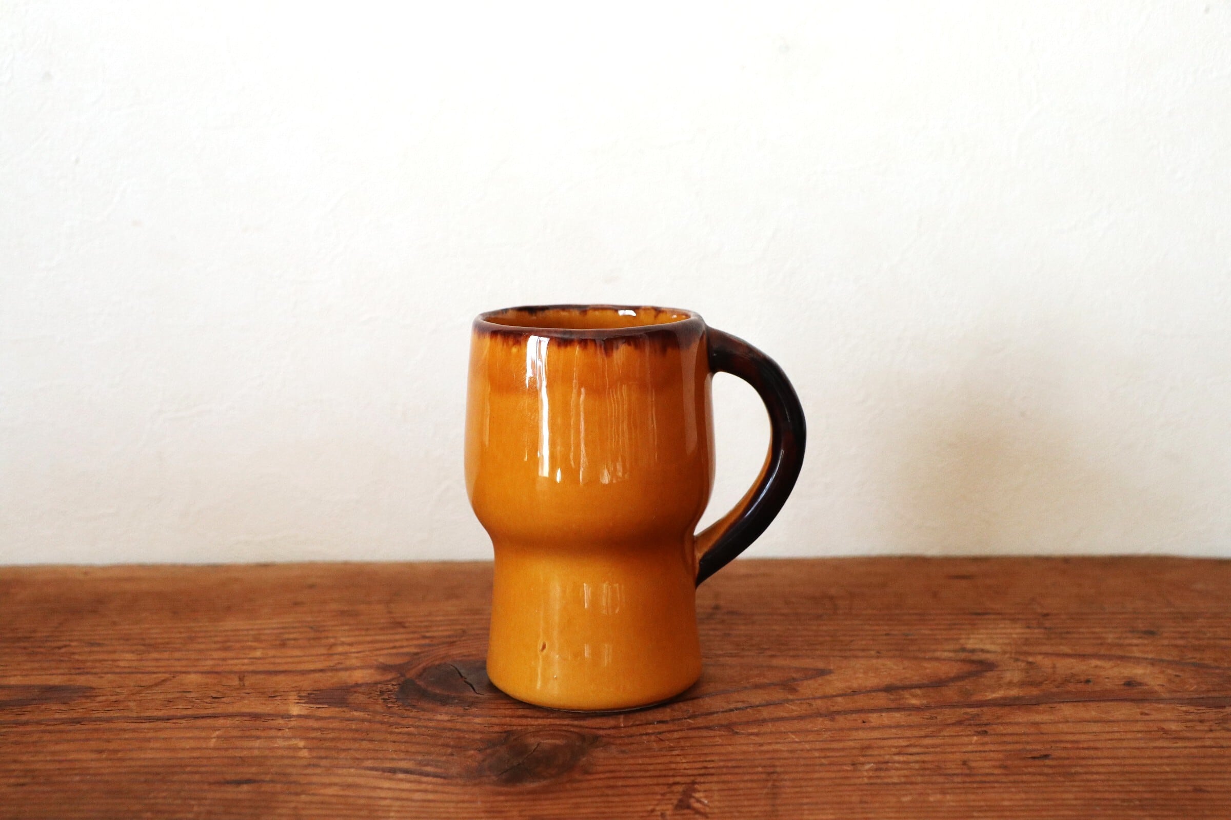 温かみある黄釉のマグ。