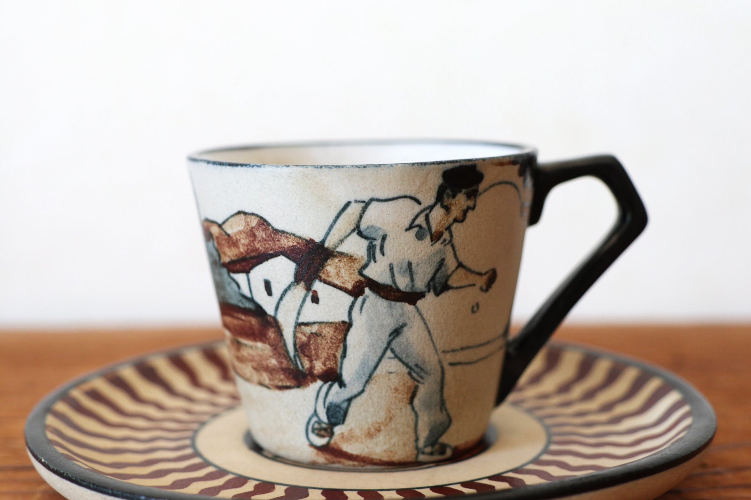 アール・デコが融合した独特の雰囲気を持つ、ネオ・バスク様式の作品を生み出しました。人々の生活風景や動物、植物などを描いたデザインにより、“芸術陶器=シブール窯”
