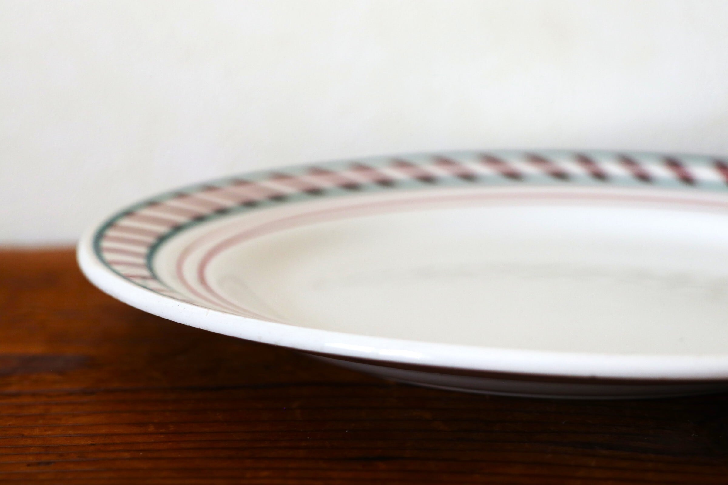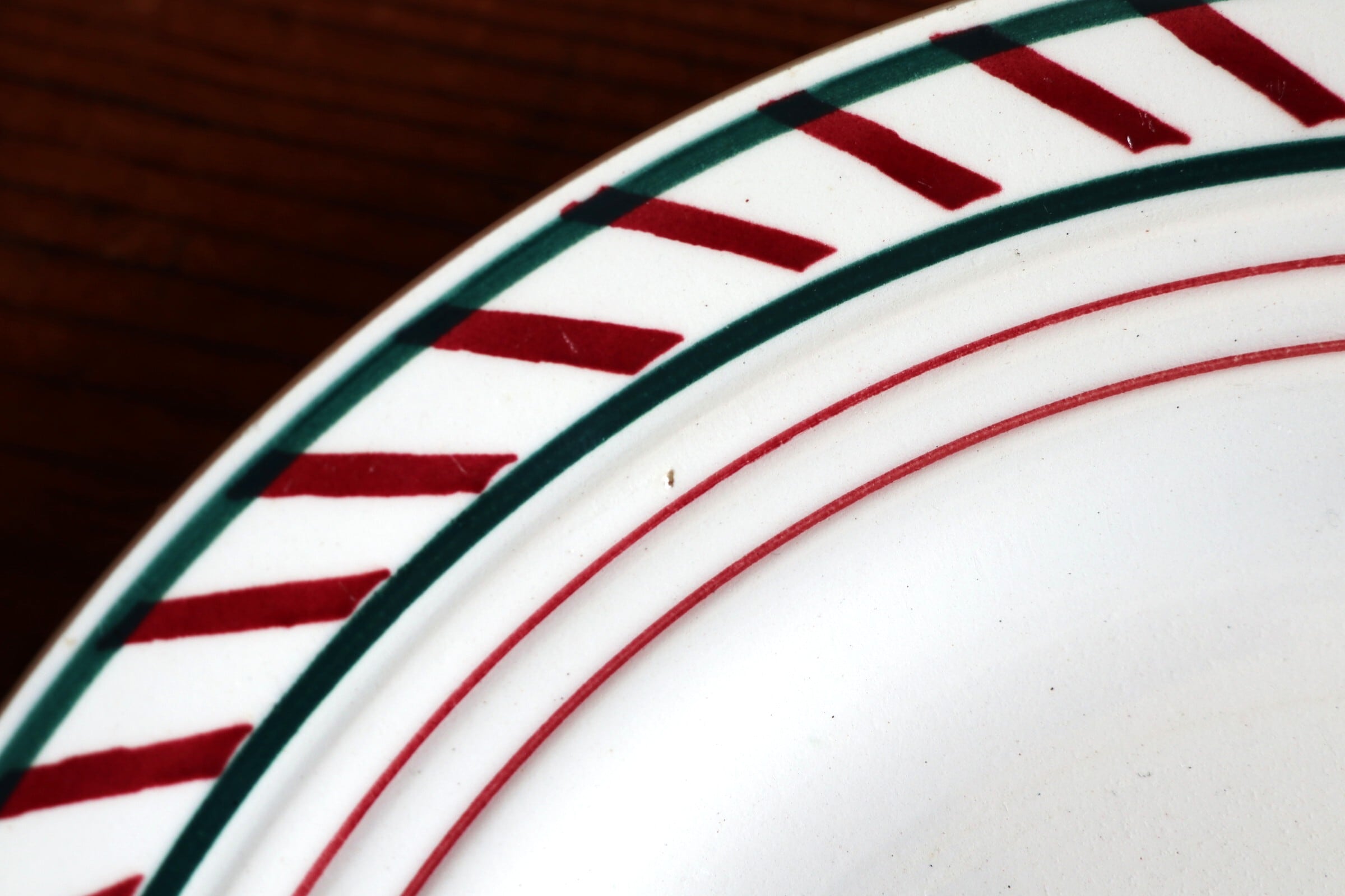 1920年、H.B.C.M窯(Hippolyte Boulenger-Creil-Montereau)が“Béarn”シリーズが発案し、その数年後の1925年、パリ万国博覧会に出品された際、当時流行の兆しがあったアール·デコ様式の印象を与えるそのデザインが、たくさんの人々を魅了し、Béarnシリーズにブームの火が付きました。それを機に、他の窯元が1920年代〜1940年代半ばに亘り、様々なデザインのバスク模様の食器を生産していきました。1950年以降は、素材をより丈夫な磁器に変えて生産され、現在でも変わらずバスクを象徴するもののひとつして、レストランで料理が提供されたりと、バスクの人々の暮らしに根付いています。