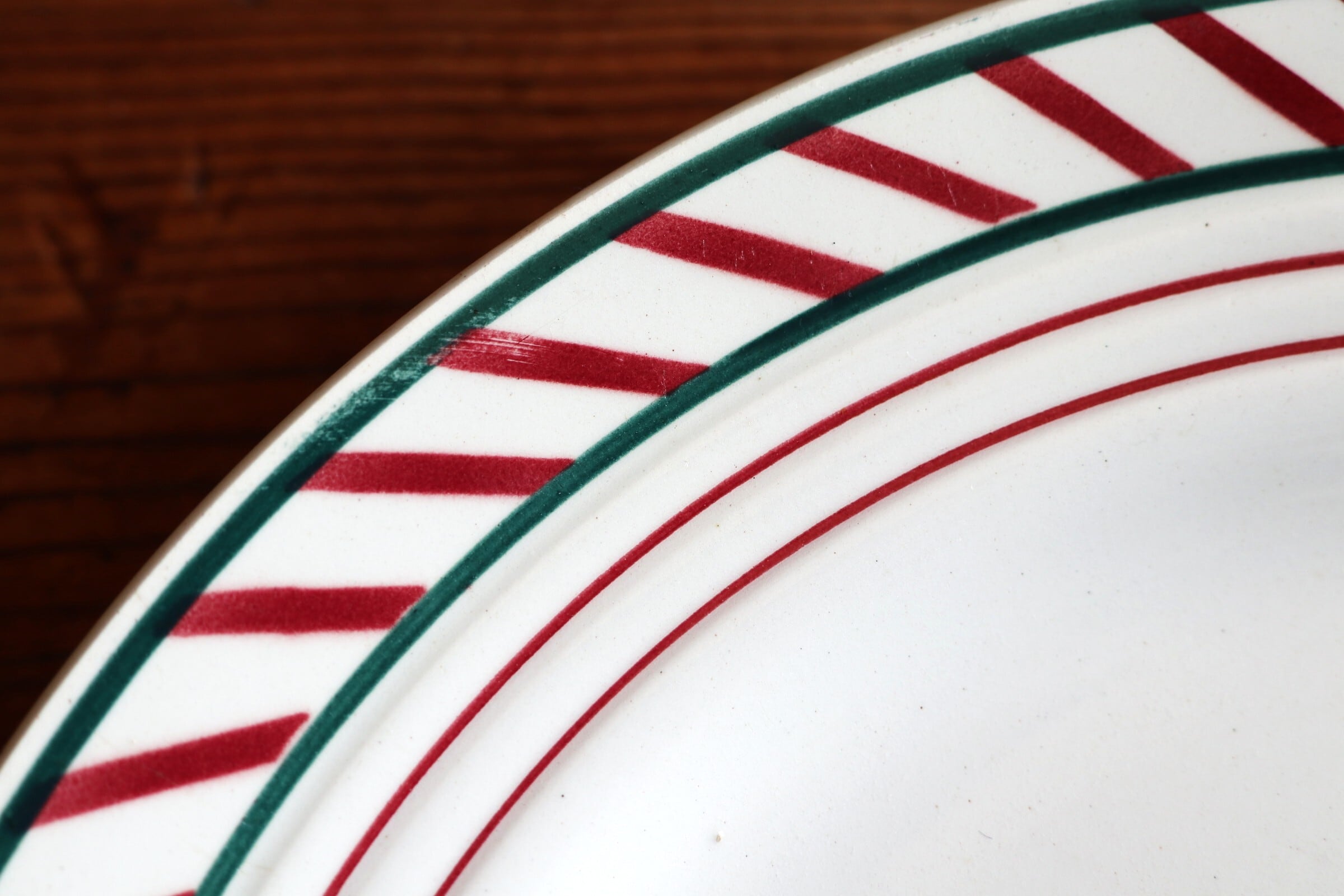 1920年、H.B.C.M窯(Hippolyte Boulenger-Creil-Montereau)が“Béarn”シリーズが発案し、その数年後の1925年、パリ万国博覧会に出品された際、当時流行の兆しがあったアール·デコ様式の印象を与えるそのデザインが、たくさんの人々を魅了し、Béarnシリーズにブームの火が付きました。それを機に、他の窯元が1920年代〜1940年代半ばに亘り、様々なデザインのバスク模様の食器を生産していきました。1950年以降は、素材をより丈夫な磁器に変えて生産され、現在でも変わらずバスクを象徴するもののひとつして、レストランで料理が提供されたりと、バスクの人々の暮らしに根付いています。